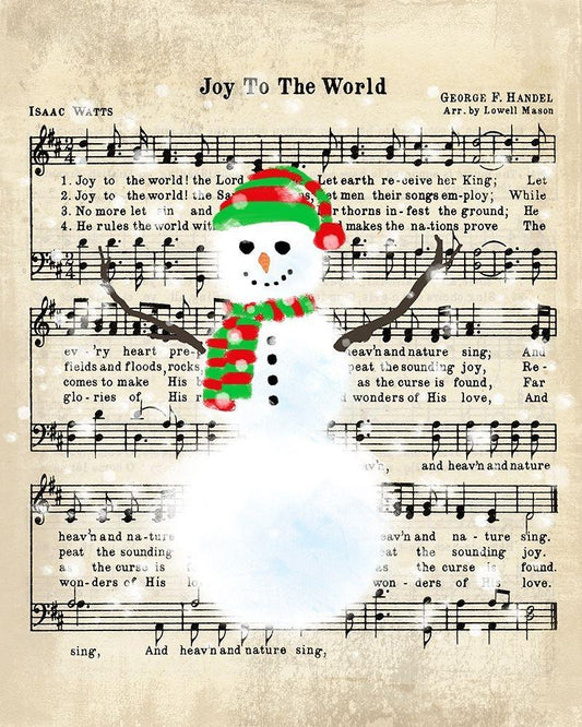 Snowman Conducts Joy To The World White Modern Wood Framed Art Print with Double Matting by Lavoie, Tina