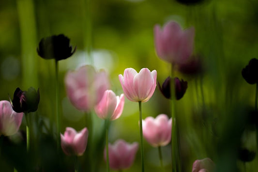 Tulips White Modern Wood Framed Art Print with Double Matting by Kazumasa, Kondou