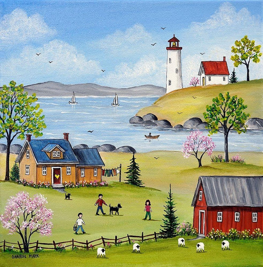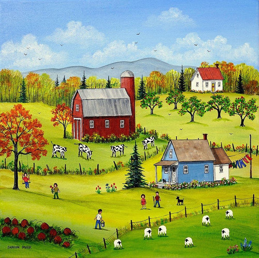 At the Farm White Modern Wood Framed Art Print with Double Matting by Mark, Sharon