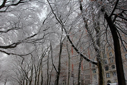 Snow Covered Trees Apartments White Modern Wood Framed Art Print with Double Matting by Goldwitz, Robert