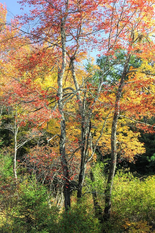 Autumn Tree Cluster Vertical White Modern Wood Framed Art Print with Double Matting by Goldwitz, Robert