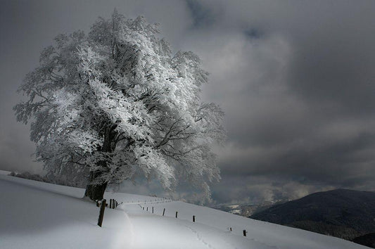 Koscielec in the Night White Modern Wood Framed Art Print with Double Matting by Nienartowicz, Karol
