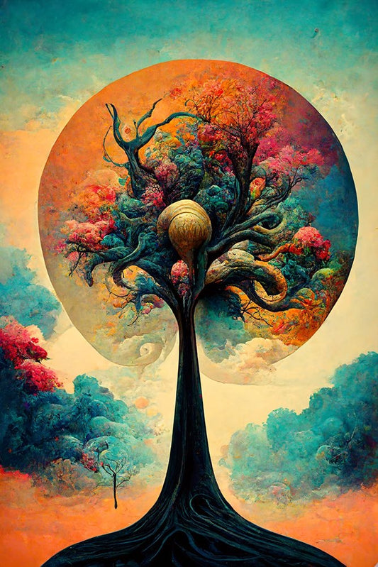 A080 Tree Of Life White Modern Wood Framed Art Print with Double Matting by Heere, Ray