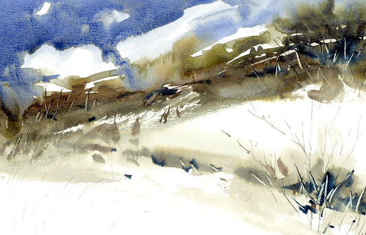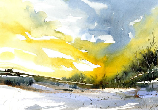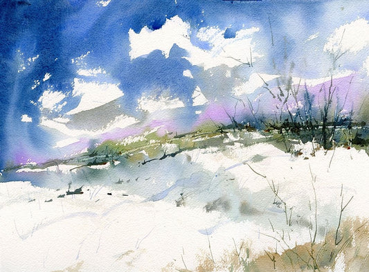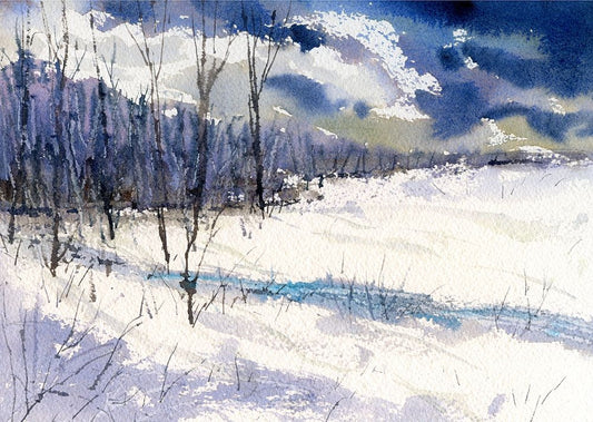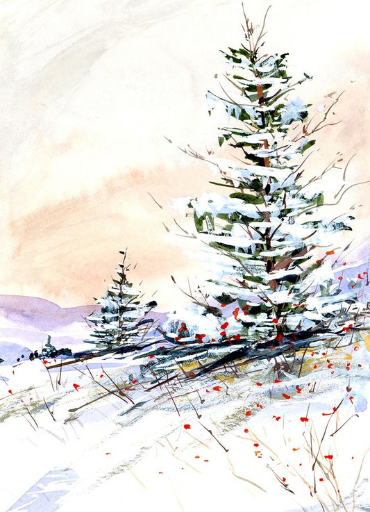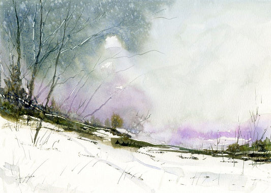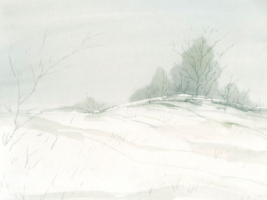 Snowy Walk White Modern Wood Framed Art Print with Double Matting by Randy Noble Fine Art