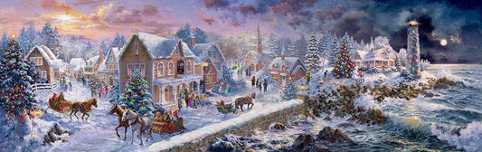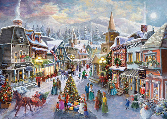 Victorian Christmas Village White Modern Wood Framed Art Print with Double Matting by Boehme, Nicky