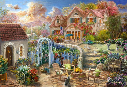Cottage Garden in Full Bloom White Modern Wood Framed Art Print with Double Matting by Boehme, Nicky