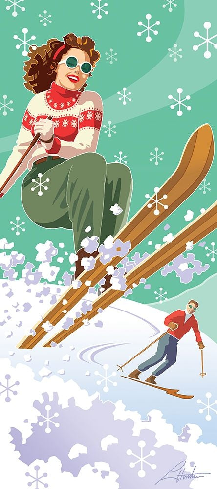 Vintage Skiers White Modern Wood Framed Art Print with Double Matting by Hunter, Larry