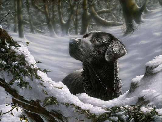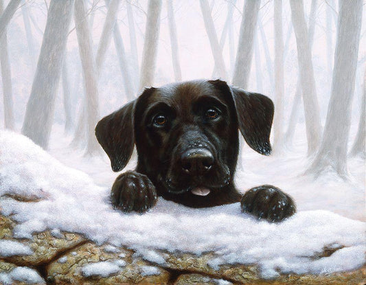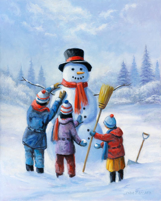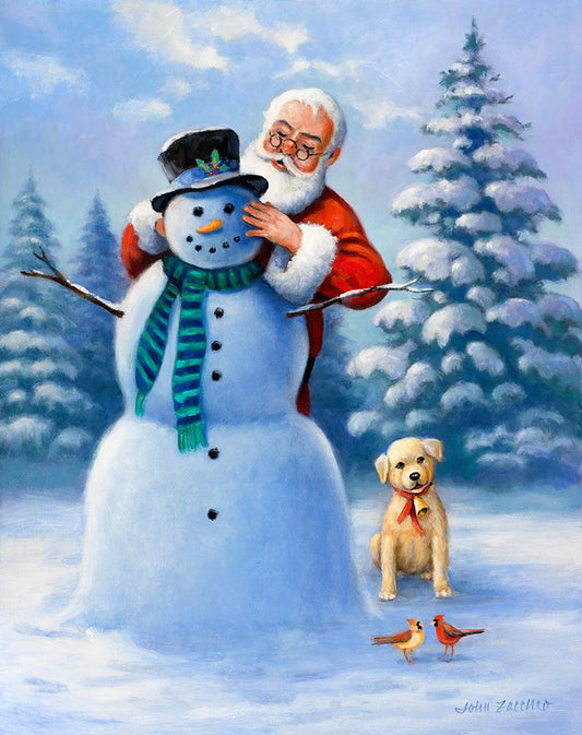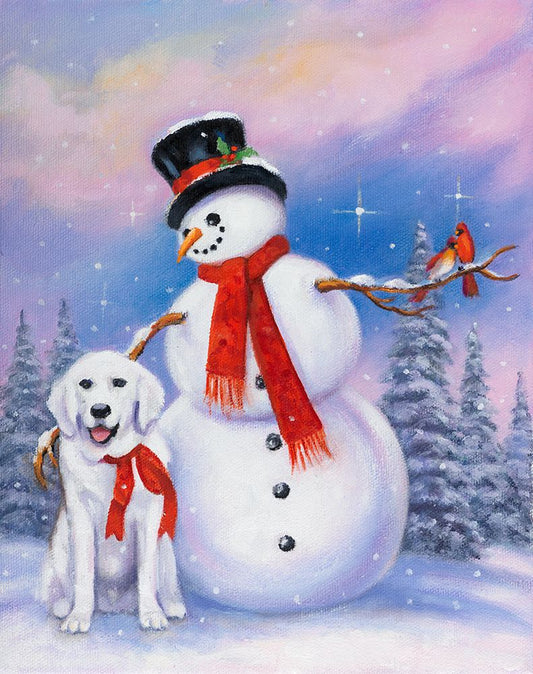 Snowman and Dog White Modern Wood Framed Art Print with Double Matting by Zaccheo, John