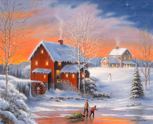 Winter At The Old Mill White Modern Wood Framed Art Print with Double Matting by Zaccheo, John