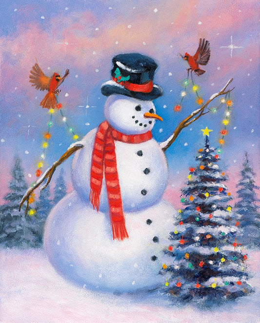 Snowman Decorating the Tree White Modern Wood Framed Art Print with Double Matting by Zaccheo, John