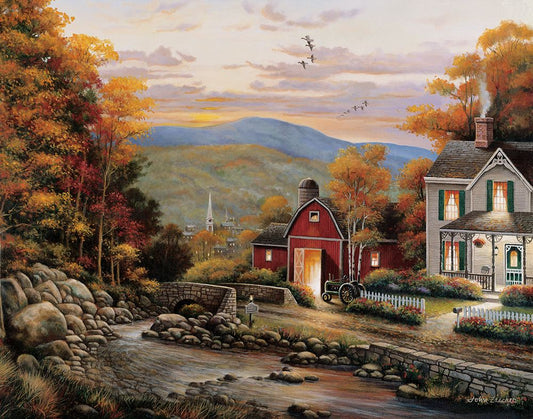 Autumnal Breeze In Pleasantville White Modern Wood Framed Art Print with Double Matting by Zaccheo, John