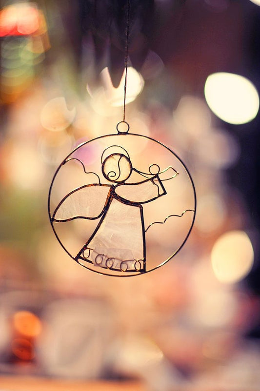 Christmas Angel White Modern Wood Framed Art Print with Double Matting by Jenny Rainbow Fine Art