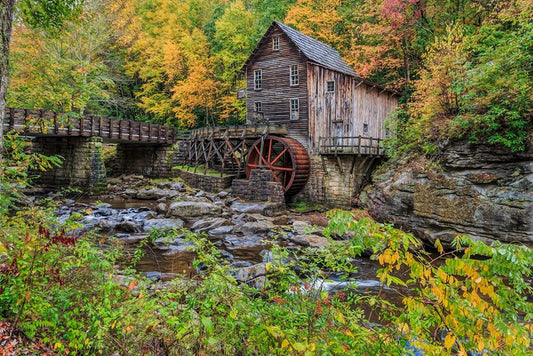 Grist Mill In The Fall White Modern Wood Framed Art Print with Double Matting by Galloimages Online