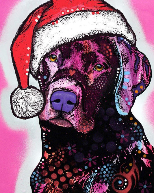 Black Lab Christmas White Modern Wood Framed Art Print with Double Matting by Dean Russo Collection