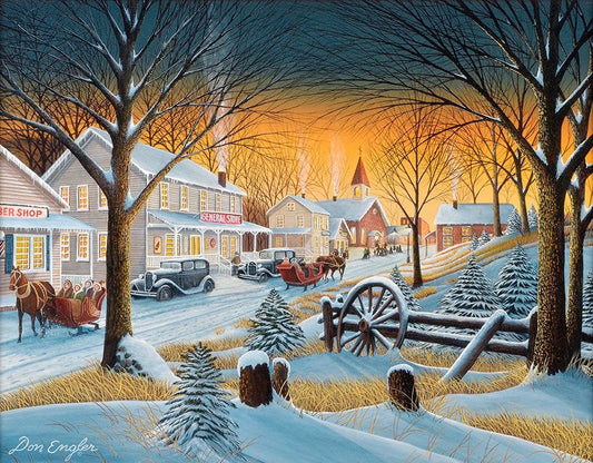 Hometown Christmas White Modern Wood Framed Art Print with Double Matting by Engler, Don