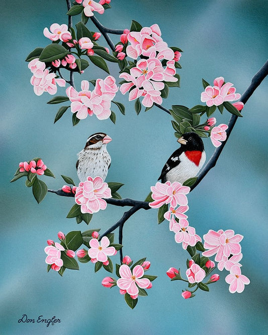 Red-breasted Grosbeaks White Modern Wood Framed Art Print with Double Matting by Engler, Don