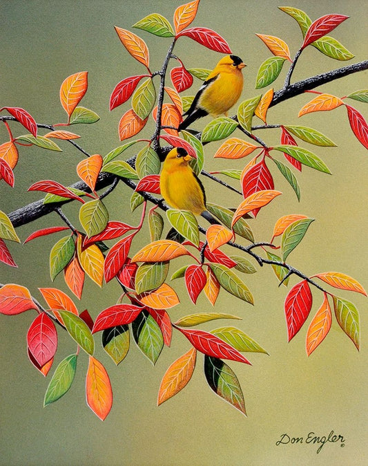 Backyard Goldfinches White Modern Wood Framed Art Print with Double Matting by Engler, Don