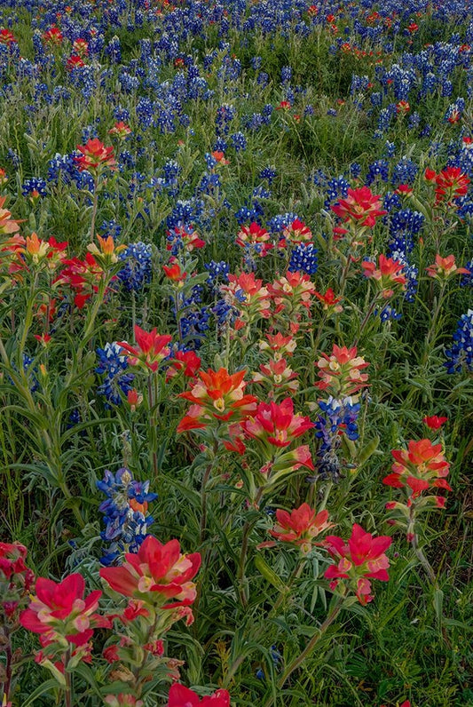 Bluebonnets and Indian Paintbrush 2 White Modern Wood Framed Art Print with Double Matting by Sherrell, Bill