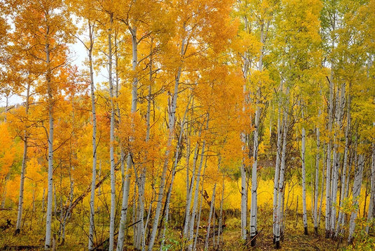 Aspen Forest In Autumn White Modern Wood Framed Art Print with Double Matting by Sherrell, Bill