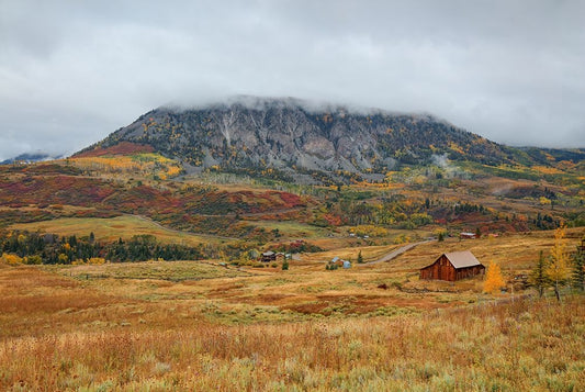 Autumn Barn At Deep Creek Mesa White Modern Wood Framed Art Print with Double Matting by Sherrell, Bill
