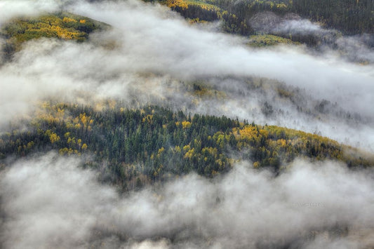 Aspen Forest In The Clouds White Modern Wood Framed Art Print with Double Matting by Sherrell, Bill