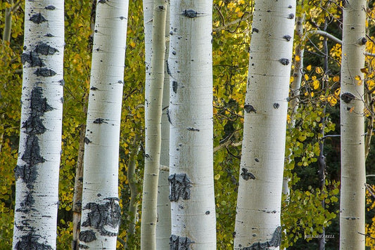 Aspen Trunks White Modern Wood Framed Art Print with Double Matting by Sherrell, Bill