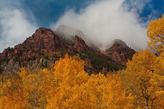Mountain Lace And Autumn Pockets White Modern Wood Framed Art Print with Double Matting by Sherrell, Bill