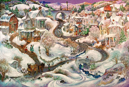 Snowfolks White Modern Wood Framed Art Print with Double Matting by Bell, Bill