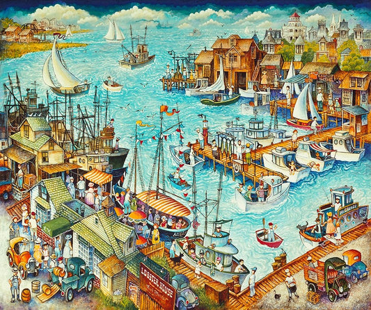 Marina / Cape May White Modern Wood Framed Art Print with Double Matting by Bell, Bill