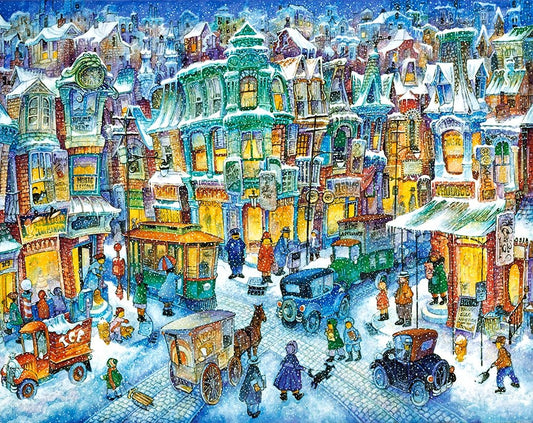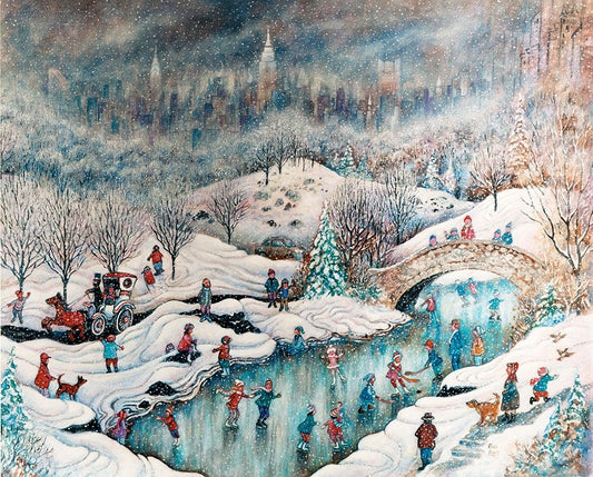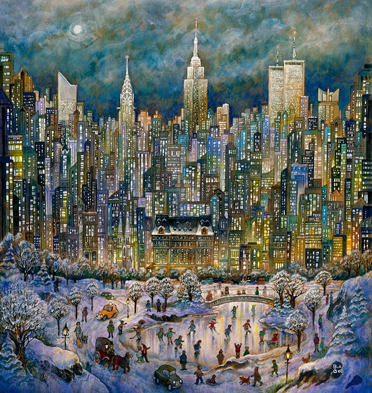 Snowtime In New York White Modern Wood Framed Art Print with Double Matting by Bell, Bill