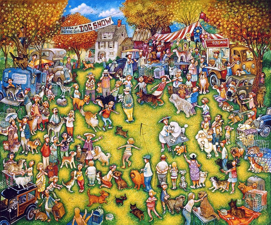 Dog Show 2 White Modern Wood Framed Art Print with Double Matting by Bell, Bill