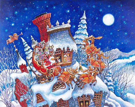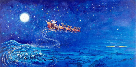 Here Comes Santa Claus (Pc) White Modern Wood Framed Art Print with Double Matting by Bell, Bill