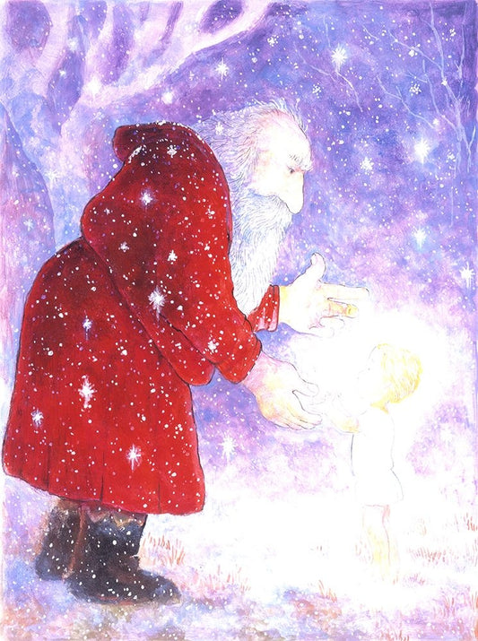 Santa And The Snowfolks (Pc) White Modern Wood Framed Art Print with Double Matting by Bell, Bill