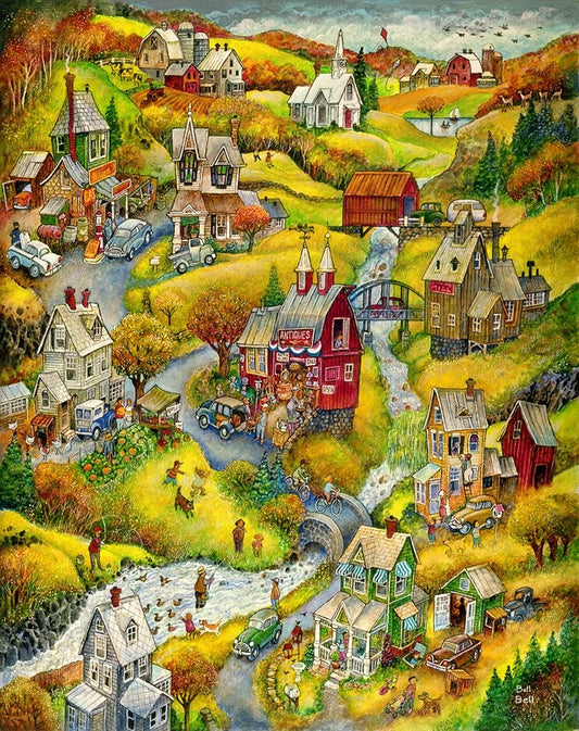 Country Autumn White Modern Wood Framed Art Print with Double Matting by Bell, Bill