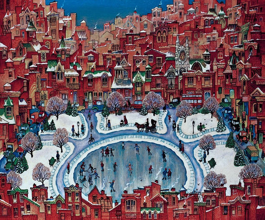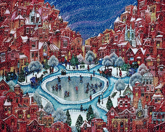 Skating At Rockefeller White Modern Wood Framed Art Print with Double Matting by Bell, Bill