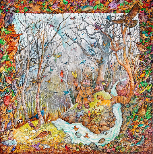 Francis and Friends White Modern Wood Framed Art Print with Double Matting by Bell, Bill