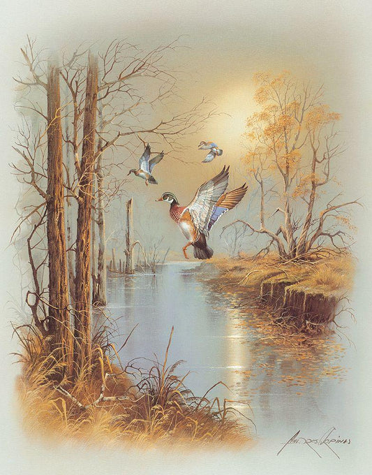 Ducks A White Modern Wood Framed Art Print with Double Matting by Orpinas, Andres