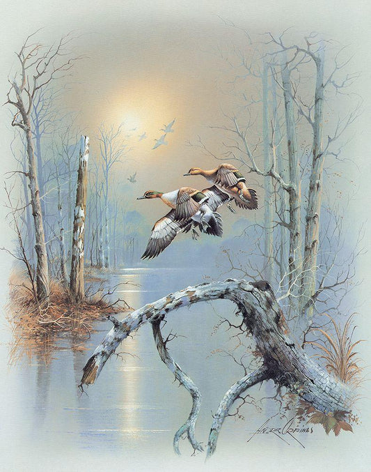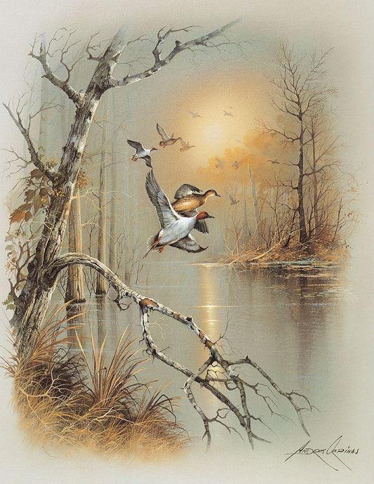 Ducks D White Modern Wood Framed Art Print with Double Matting by Orpinas, Andres