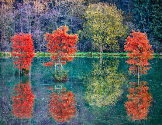 Autumn White Modern Wood Framed Art Print with Double Matting by Heine, Ben