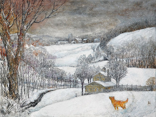 Daisy’s First Snow White Modern Wood Framed Art Print with Double Matting by Bell, Bill