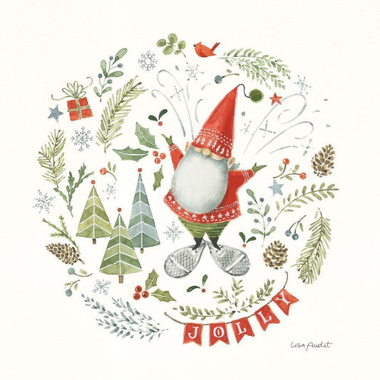 Jolly Gnomes I White Modern Wood Framed Art Print with Double Matting by Audit, Lisa