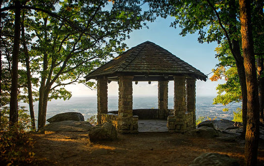 Fall Gazebo Overlook White Modern Wood Framed Art Print with Double Matting by Lee, Rachel