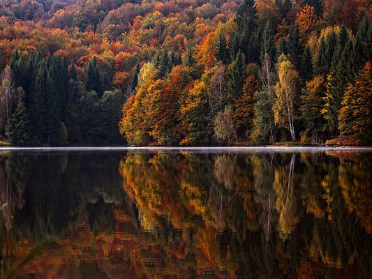 Fall Vista White Modern Wood Framed Art Print with Double Matting by Lee, Rachel