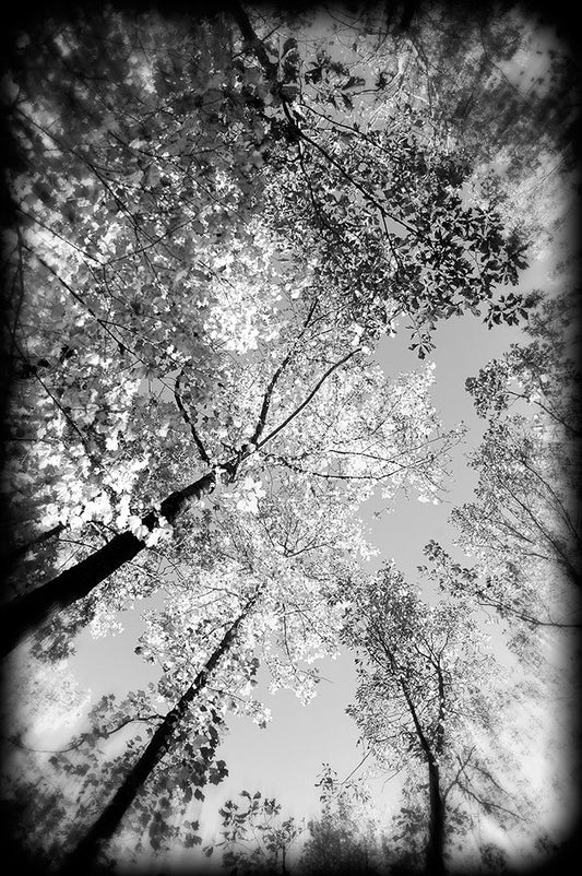 Fall Trees BW Holga White Modern Wood Framed Art Print with Double Matting by Lee, Rachel