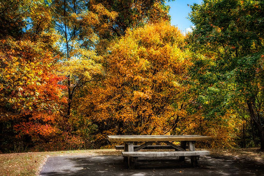 Fall Picnic White Modern Wood Framed Art Print with Double Matting by Lee, Rachel
