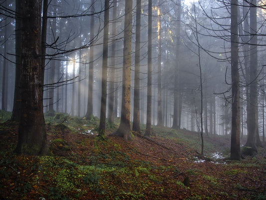 Fall Trees 7 White Modern Wood Framed Art Print with Double Matting by Lee, Rachel