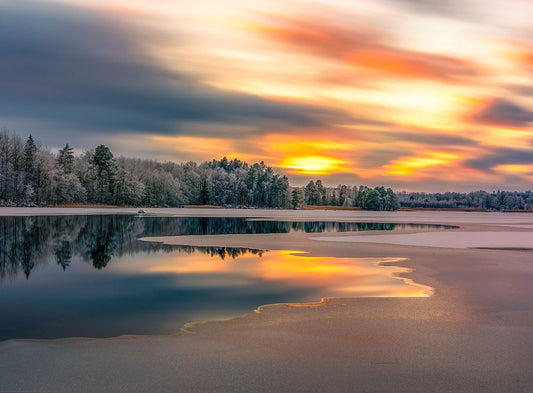 Ice slowly taking over the lake White Modern Wood Framed Art Print with Double Matting by Lindsten, Christian