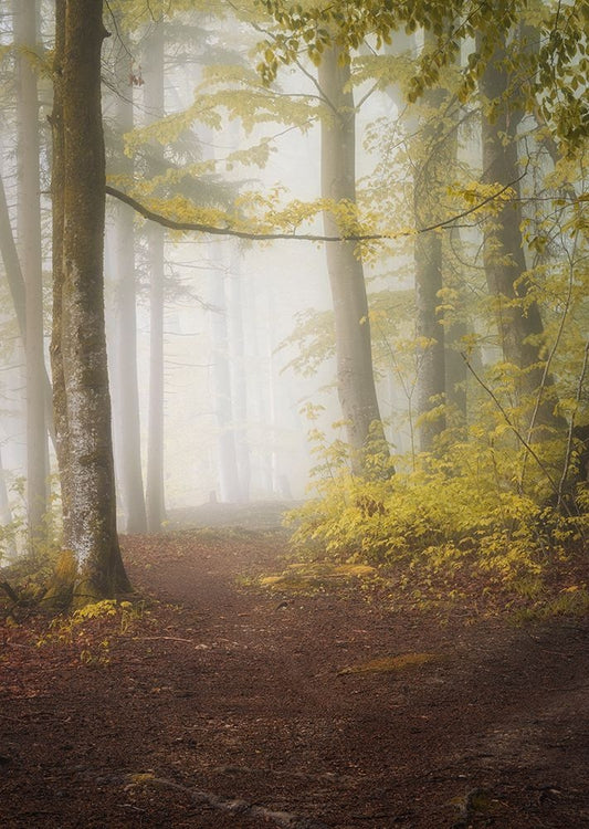 Into the autumn morning White Modern Wood Framed Art Print with Double Matting by Zhang, Eric