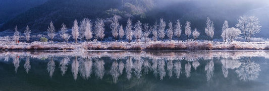 Cold morning White Modern Wood Framed Art Print with Double Matting by Seo, Tiger