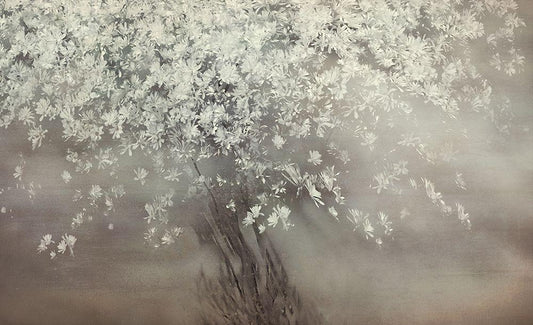 Sakura White Modern Wood Framed Art Print with Double Matting by ShikiRyu